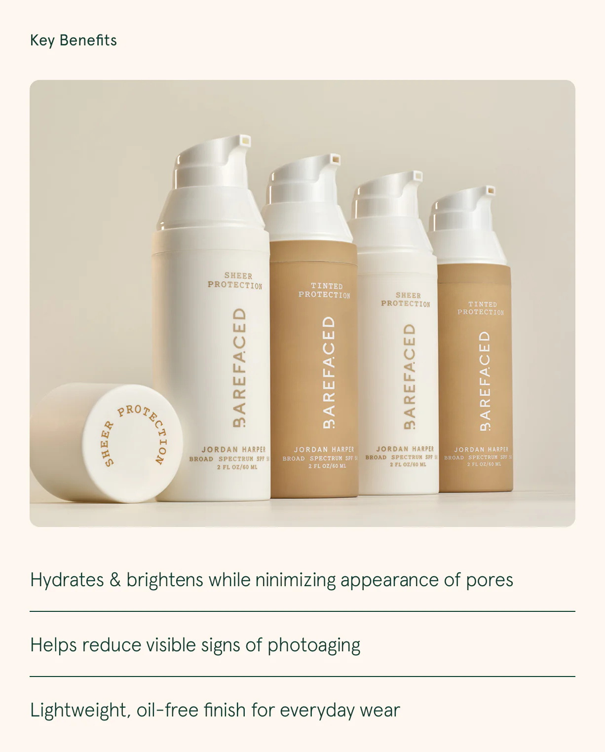 Looking for an SPF duo that not only protects but also enhances your skin? Our SPF Duo has you covered with two must-have formulas. Sheer SPF is your daily essential, offering broad-spectrum UVA/UVB protection while delivering skincare benefits. This lightweight, oil-free formula hydrates, brightens, and reduces puffiness, leaving your skin refreshed, glowing, and shielded from the sun’s harmful rays. The Tinted SPF provides all the same protective benefits with a touch of tint, offering a naturally even complexion while protecting your skin from UV damage. Together, these two SPFs keep your skin safe, bright, and radiant all day long.